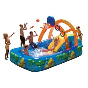 The photos are horribly, HORRIBLY misleading. The exact product is *barely* large enough for two children. The concept that two, three, four or five youngsters can play on it as shown in the photographs is about as a manners from reality as that you might get. The slide is pointless for kids over 4, the arch and basket are flimsy for most children, and the pool itself is barely greater than a bathtub. This actually ought to be pulled from the shelves for misleading merchandising.